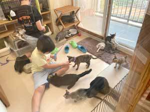猫の幼稚園、授業参観」の主旨は、多くの方に猫と触れ合う楽しさを知って頂く事と、運営資金の調達、保護猫活動の広報です。